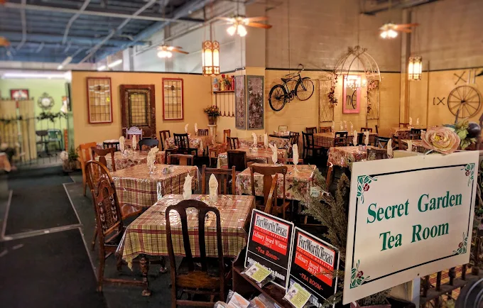 Tucked inside Montgomery Street Antique Mall, the Secret Garden Tea Room has long been considered one of Fort Worth’s hidden dining gems. For years, visitors exploring the antique booths have paused here to relax and enjoy a quiet meal, making the Montgomery Street Antique Mall tea room a memorable part of the shopping experience.