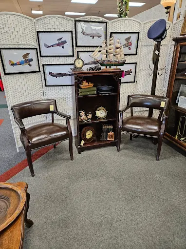 Furniture ranges from Victorian to Mid-Century Modern to farmhouse primitives. Expect solid oak tables, teak credenzas, vintage lamps, and restored cabinets.